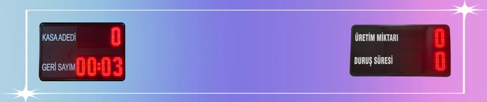 Fabrikalarda Kullanılan Üretim Bilgisi - Hız bilgisi - Veri giriş Çıkış kontrolü Hedef Üretim Takip Verilerini Gösteren Led Ekran cihazlarımızdır.