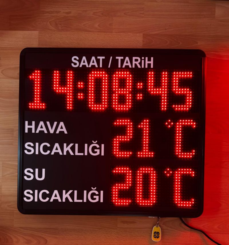 60x80 Ölçülerinde Saat Tarih Sıcaklık Nem Ph Klor Değerlerini Gösteren Havuz Sıcaklık Göstergesi
