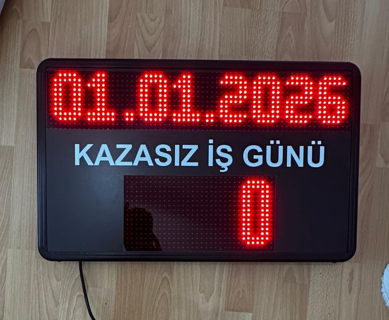 Kazasız İş Günü Tabelası Uzaktan Kumanda ve Bilgisayar Haberleşme Özelliği Saat - Tarih - Sıcaklık - Nem - Rekor Gün Gibi Özellikler Eklenebilir. İst